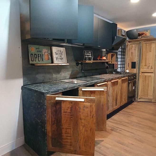 Οι πόρτες Sierra Nevada συνδυάζουν ανθεκτικά υλικά από πραγματικό μασίφ ξύλο με επεξεργασία παλαιωμένου υλικού για όσους αναζητούν μια μοντέρνα κουζίνα με vintage αίσθηση.